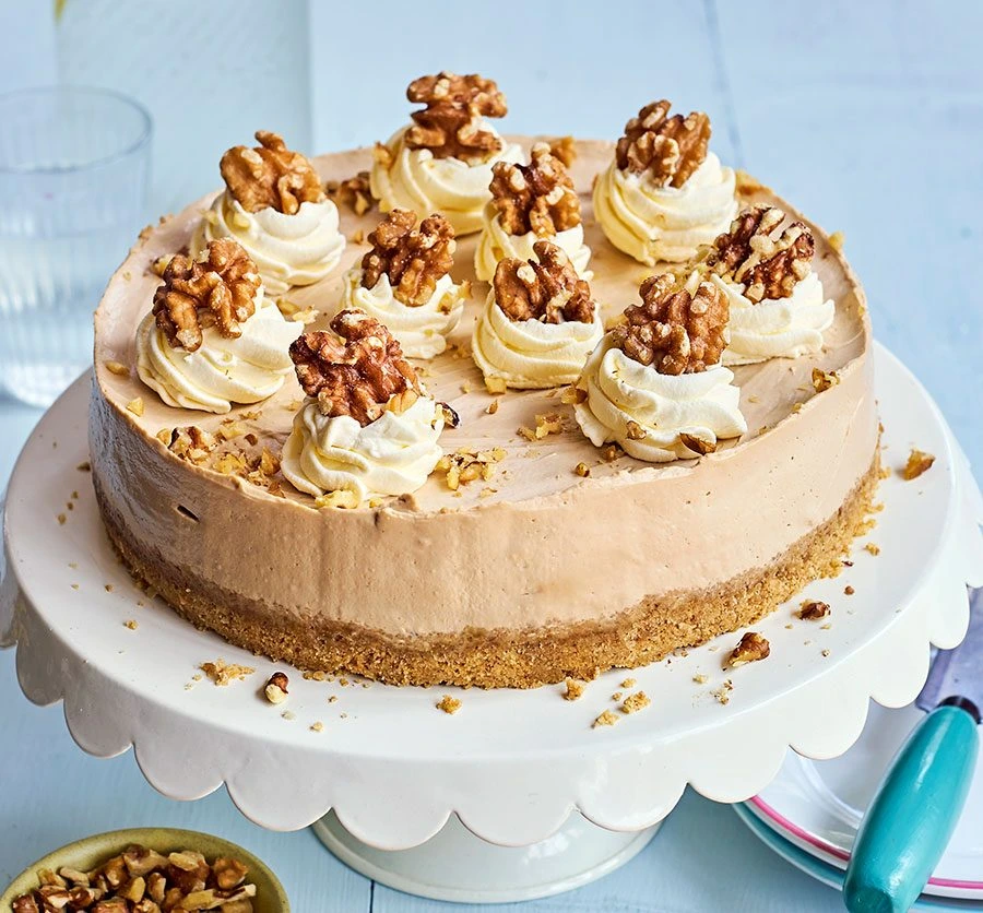 Treat your taste buds to the rich and luxurious taste of our Coffee & Walnut Cheesecake. Crafted with a smooth, creamy coffee-infused filling, this dessert is perfectly complemented by crunchy toasted walnuts and a buttery biscuit base. Every slice offers a delicious balance of bold coffee notes and nutty goodness – ideal for coffee lovers and dessert enthusiasts alike.