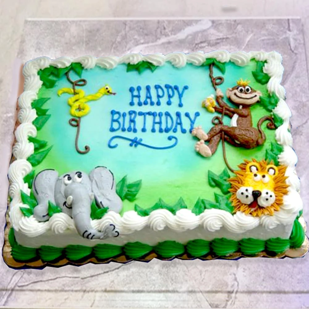Made with the finest ingredients, our Jungle Theme Cake comes in multiple flavor options—chocolate, vanilla, red velvet, and more. Every layer is soft, moist, and delicious, while the design captures the wild beauty of the jungle.