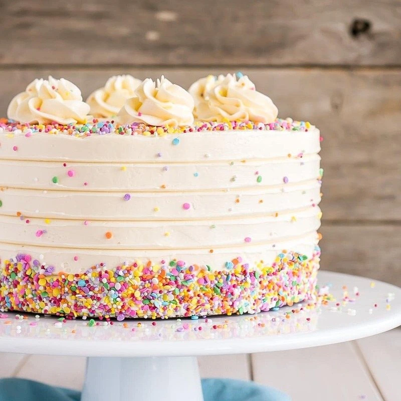 Bring joy to any occasion with our Sprinkled Vanilla Cake – a light, fluffy vanilla sponge topped with a generous layer of smooth frosting and colourful sprinkles. Perfect for birthdays, parties, or a sweet surprise, this classic treat combines timeless vanilla flavour with a playful twist. Baked fresh with quality ingredients and love in every bite!