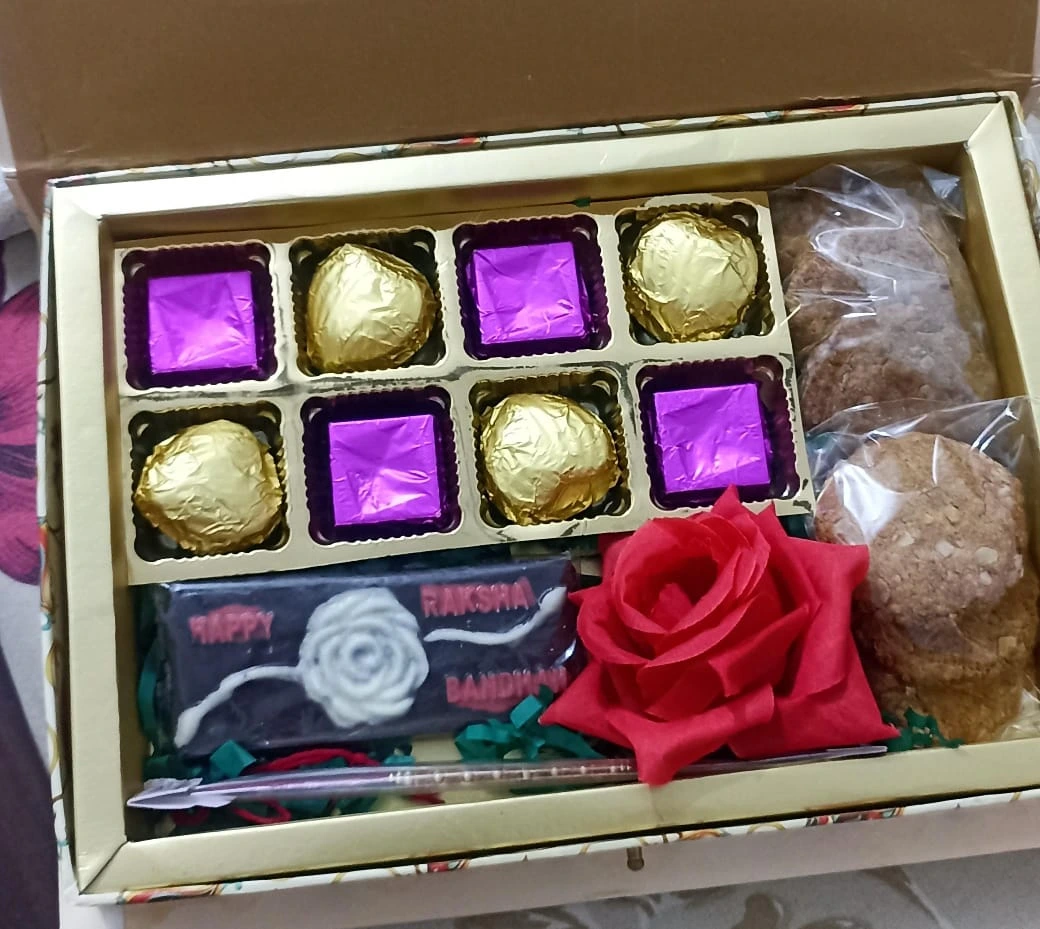 Make this Raksha Bandhan truly special with our Sweet Rakhi Gift Hamper – a perfect blend of tradition and indulgence. This beautifully curated hamper includes a premium Rakhi, delightful sweets like soan papdi or chocolates, roli-chawal, and a heartfelt greeting card – all packed with love and festive charm.